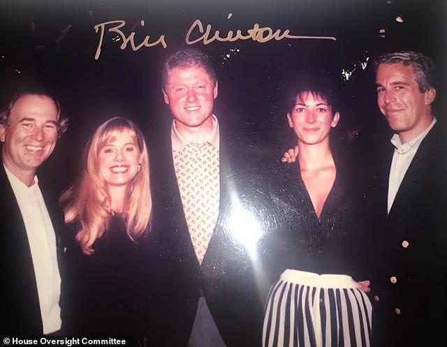 公开张照片中,还有前总统比尔·克林顿的身影。他站在C位,和歌手吉米·巴菲特及其妻子简·斯拉格斯沃尔,以及爱泼斯坦与吉斯莱恩·麦克斯韦合影。
