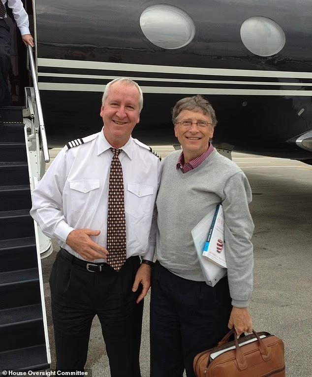 微软创始人这一次出现了两回,另一张是站在一架私人飞机的旁边,但不确定是否是“洛丽塔快线”。